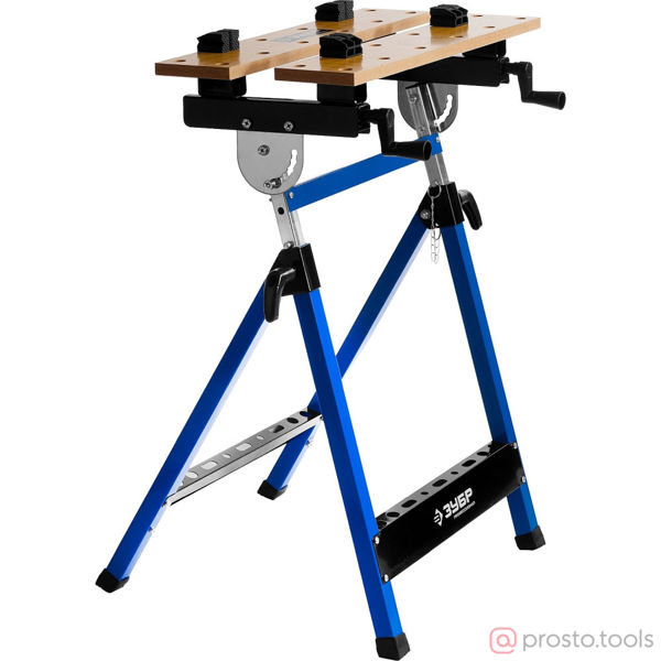 Незаменимый помощник в мастерской, в гараже и в домашних условиях. Предназначен для проведения столярных работ. Благодаря складному каркасу удобен в хранении и транспортировке. Столешница состоит из статической и подвижной части, фиксируемой двумя вращающимися ручками. Для удобства в работе столешница оснащена отверстиями и фиксаторами заготовок любой формы.