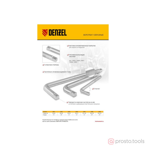 Вороток 1/4" 150х40 мм хромированный Г-образный crv, матовый хром //DENZEL