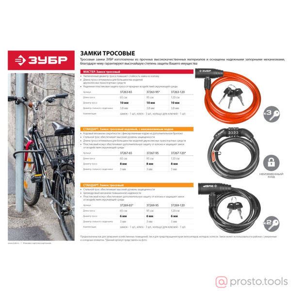 Замок ЗУБР "СТАНДАРТ", тросовый, 2 ключа в комплекте, длина троса 650мм, d 6мм